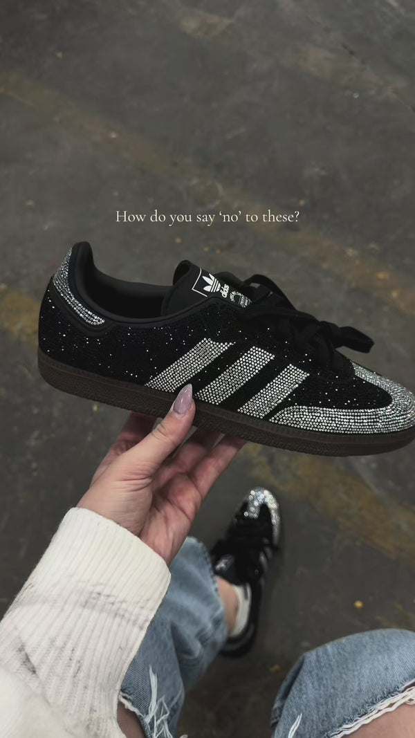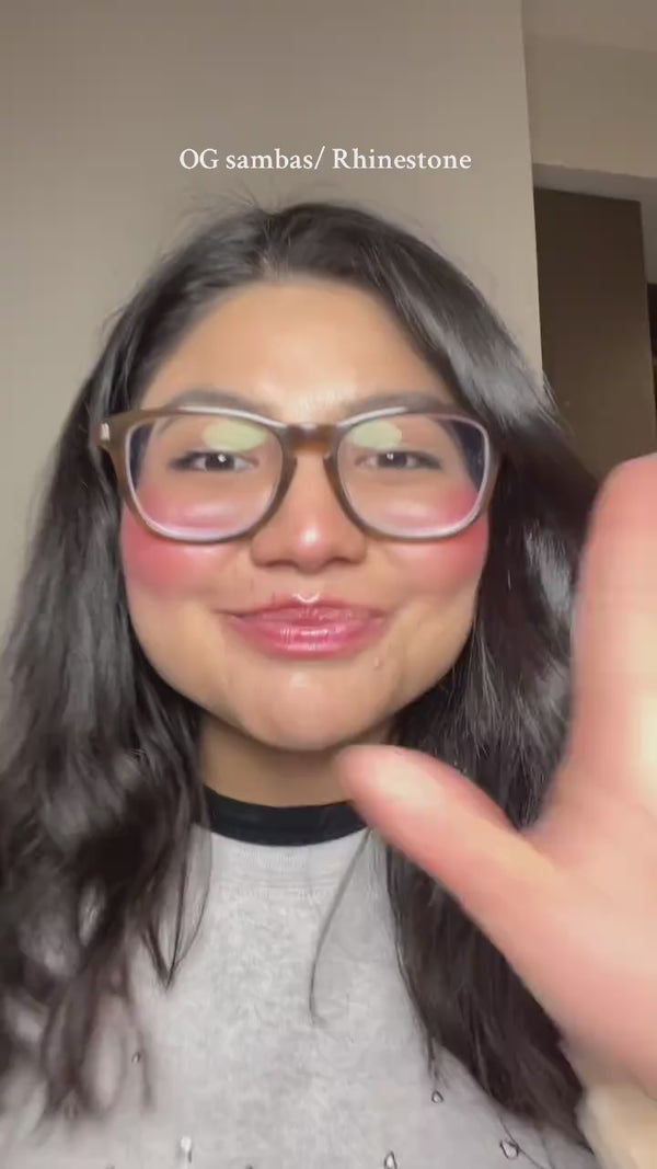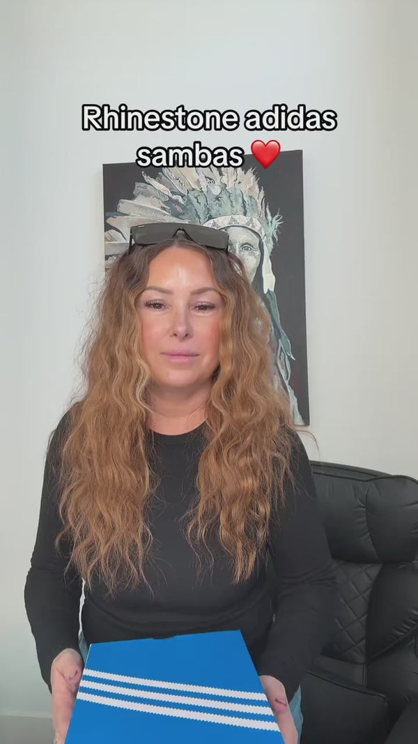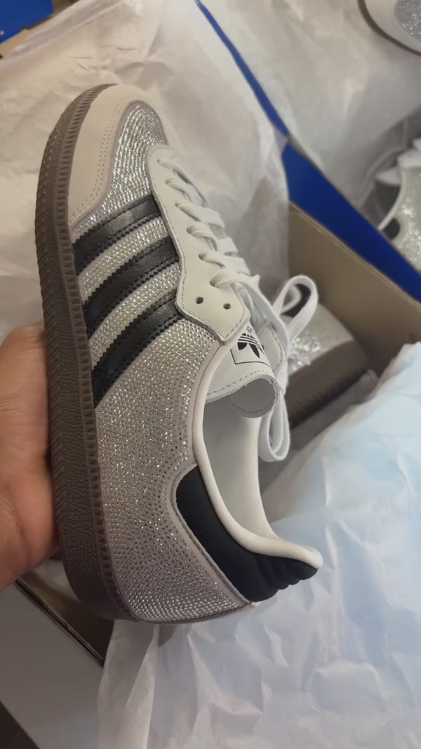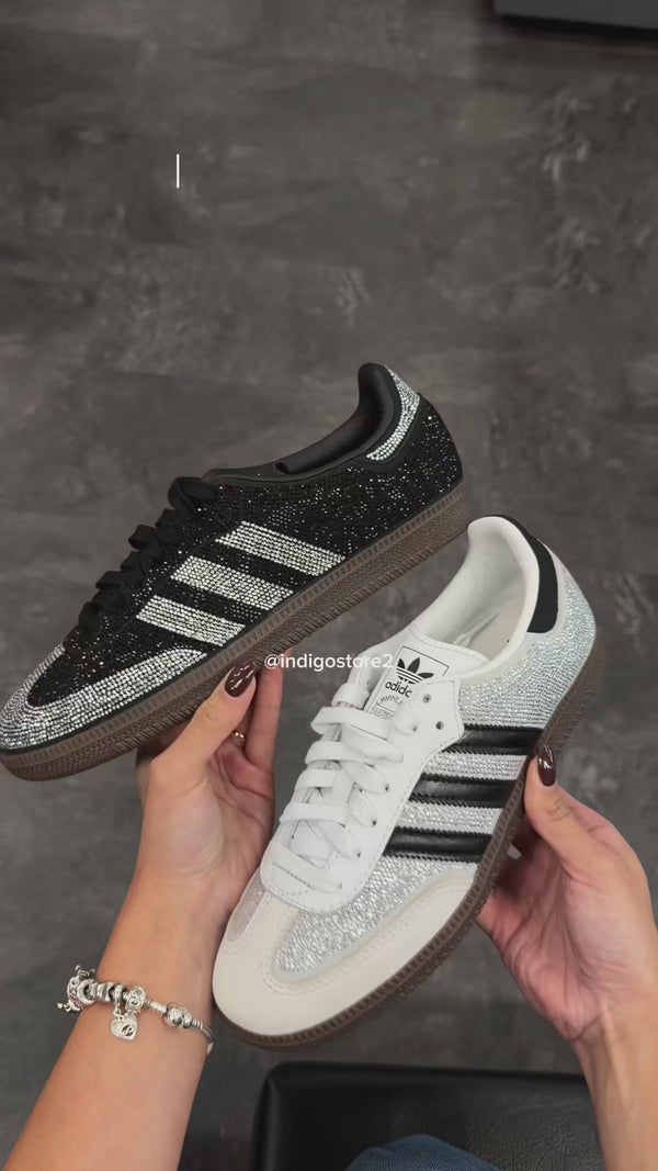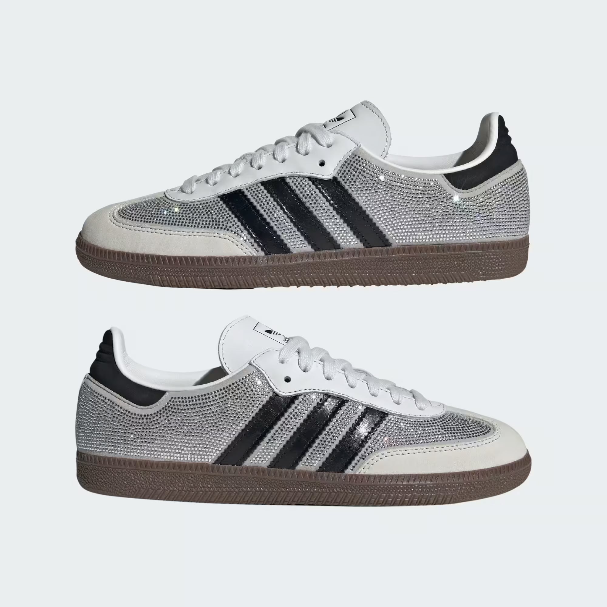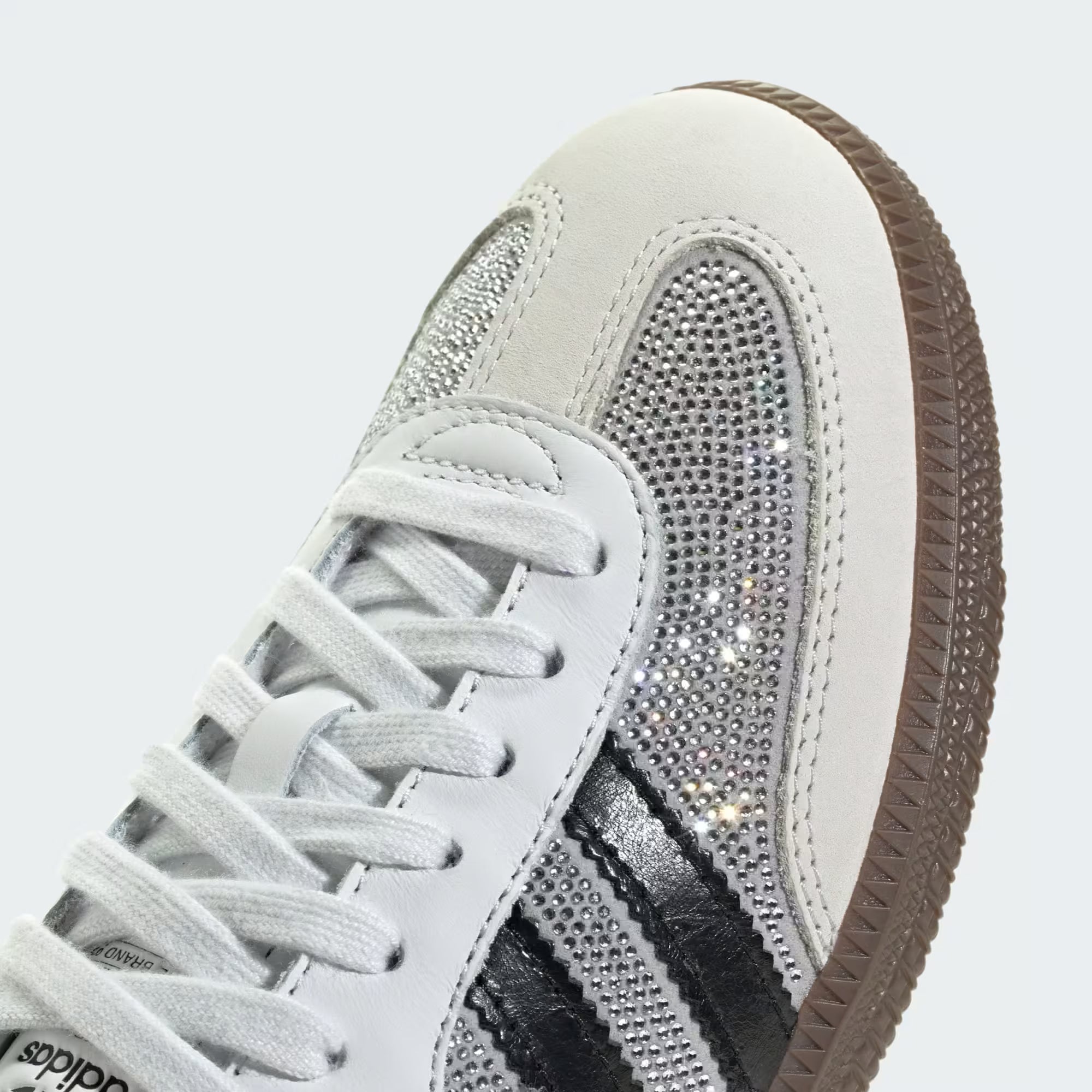 Samba OG Rhinestone förkroppsligar den tidlösa essensen av retrodesign med en modern twist. Skorna är inspirerade av fotbollskulturen och omtolkade för den urbana gatumiljön. De kombinerar en strömlinjeformad silhuett med mockadetaljer och de ikoniska 3-Stripes. Strassdetaljer tillför en subtil känsla av lyx, medan gummisulan samt Samba- och Trefoil-logotyperna förstärker den autentiska karaktären. Tillverkade av högkvalitativa material och designade för daglig komfort erbjuder de den perfekta balansen mellan sportigt arv och urban elegans.